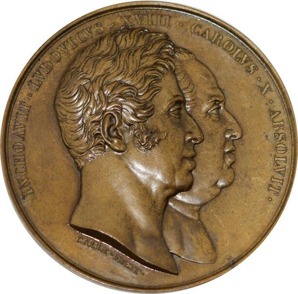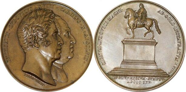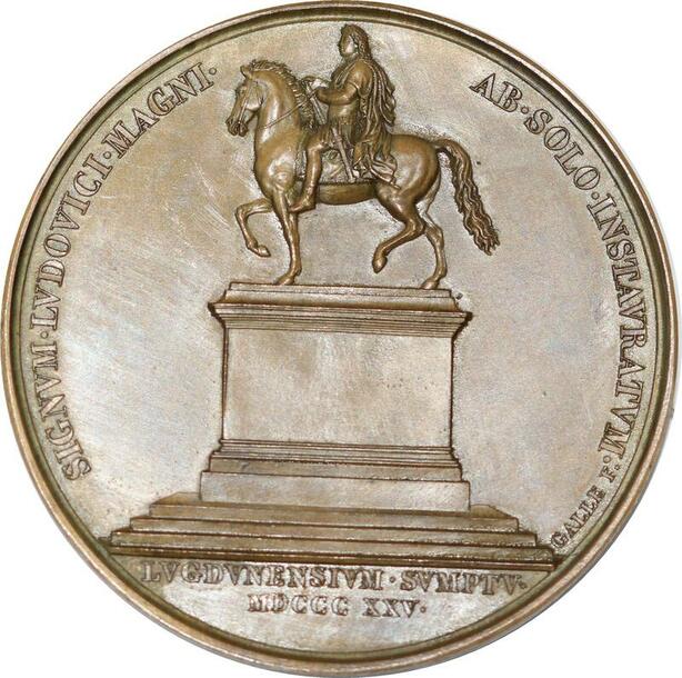 P2589 France Médaille Charles X remplacement statue Louis XIV Lyon 1825 Desnoyers SPL