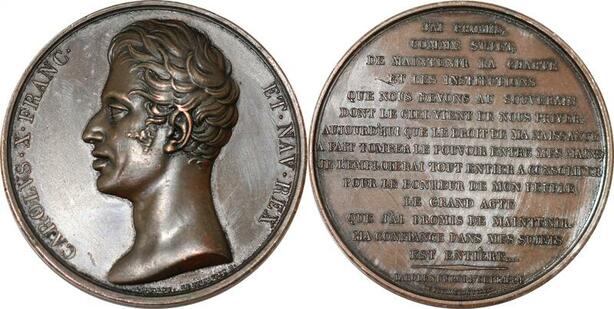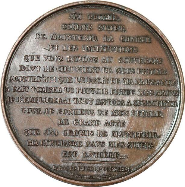 P2594 Rare France Médaille Charles X Discours du roi 17 sept 1824 Desnoyers SUP