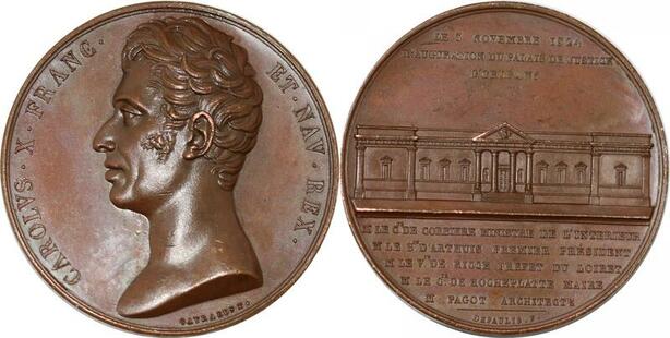 P2597 France Medal Charles X Inauguration Palais Justice Orléans 1824 Desnoyers SPL