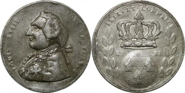 P2609 Rare France Médaille Louis XVI XVIII Paix et Commerce Desnoyers