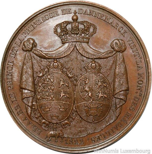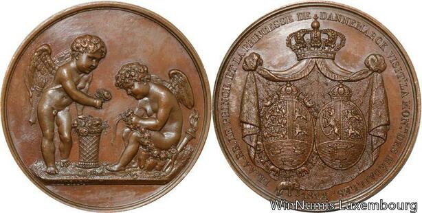 P2624 Scarce Medal Denmark Friedrich VI Prince princesse 1822 Desnoyers UNC
