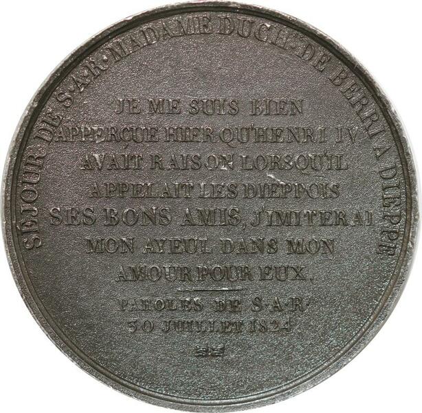 P2626 France Médaille Duchesse de Berry Séjour Dieppe 1824 Dubois Desnoyers SUP