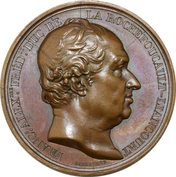 P2640 Rare France Médaille Duc de La Rochefoucault 1829 Barre Desnoyers SPL