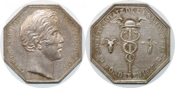 P2671 France Rare Médaille Charles X Société Royale 1827 Dubois Argent Desnoyers