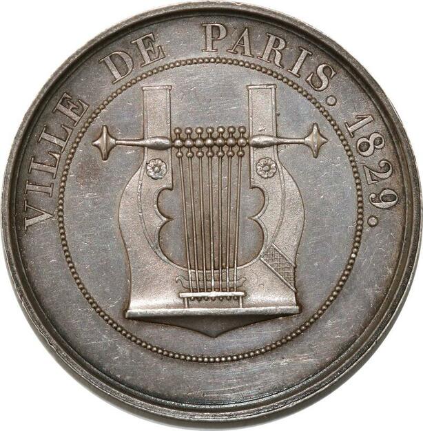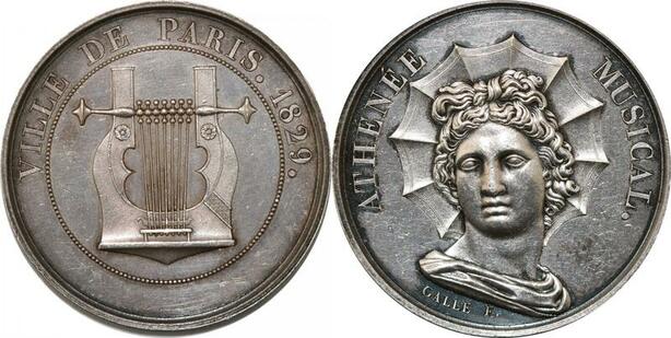 P2677 France Médaille Charles X Athénée Musical Paris 1829 Galle Argent Desnoyers SUP