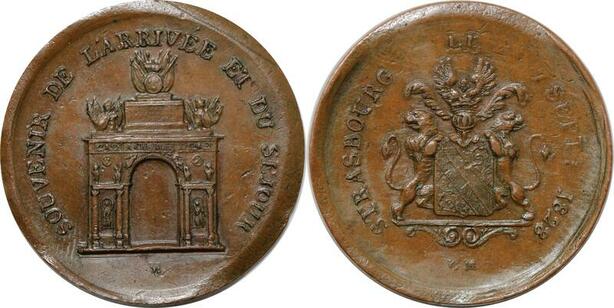 P2679 Inedit Tres Rare France Jeton Sejour Charles X Roi Strasbourg 1828 Desnoyers
