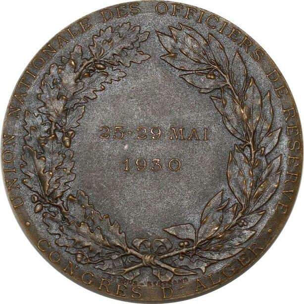 P2692 France Médaille Algérie congrès Union Nationale Officiers 1930 Desnoyers SPL