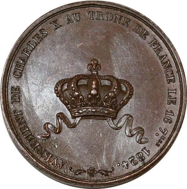P2695 France Médaille Charles X Roi de France Trône 1824 Couronne France Desnoyers SPL