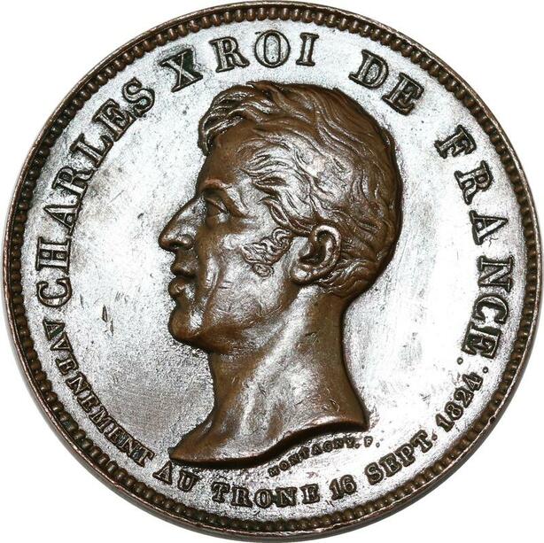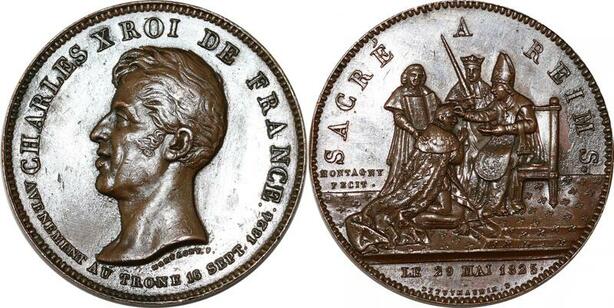 P2696 Rare France Médaille Charles X Roi de France 1824 Montagny Reims Desnoyers SPL
