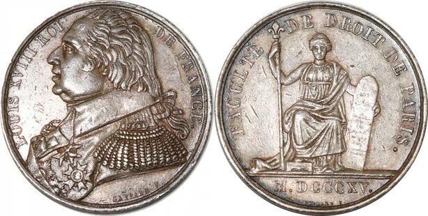 P2699 France Médaille Louis XVIII Factulté Droit Paris 1815 Gayrard Silver Desnoyers