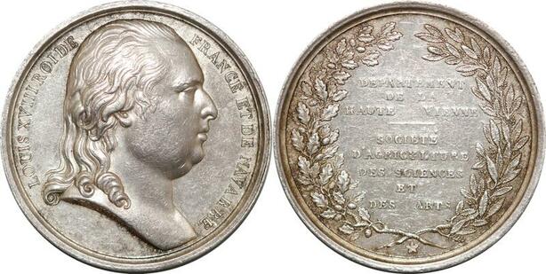 P2705 Rare France Médaille Louis XVIII Dépt Haute Vienne Sciences Arts Desnoyers SUP