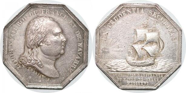 P2709 Rare France Médaille Louis XVIII Compagnies Assurances Havre 1816 Desnoyers SUP