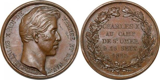 P2731 Médaille Charles X Visite camp St Omer 1827 Dubois Desnoyers SPL