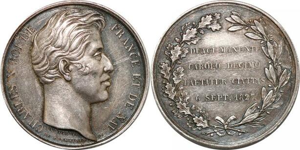 P2735 Médaille Charles X Passage Douai 1827 Desnoyers SUP