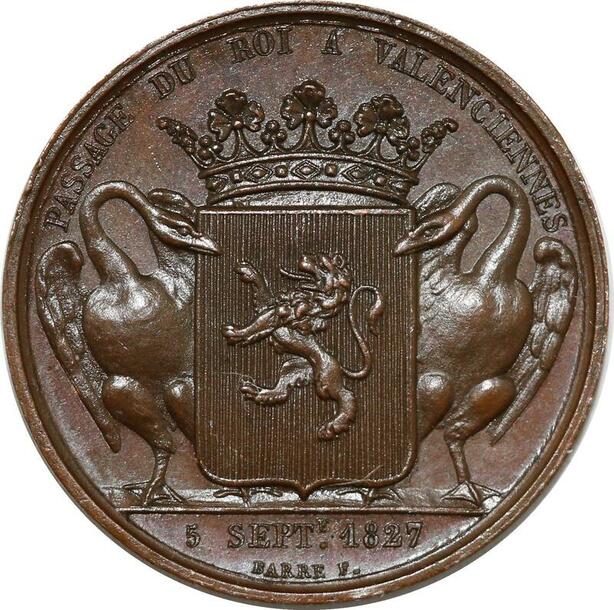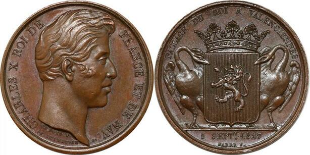 P2736 Médaille Charles X Passage Roi Valenciennes 1827 Desnoyers SPL