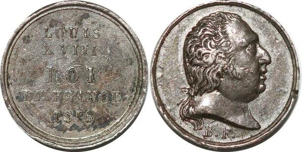 P2765 Rare France 11mm Médaille Louis XVIII Roi de France 1816 Desnoyers SUP