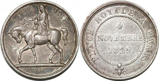 P2772 France Médaille statut Louis XIII Plave Royale Paris 1829 Barre Desnoyers SPL