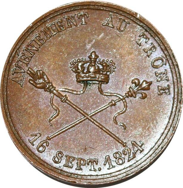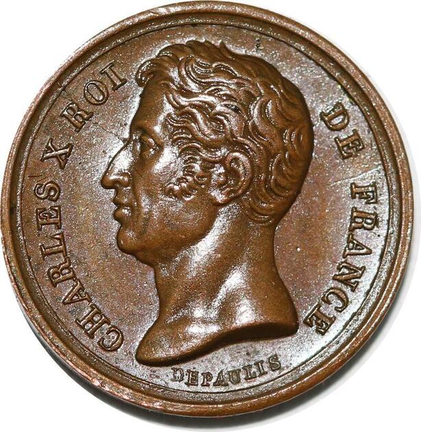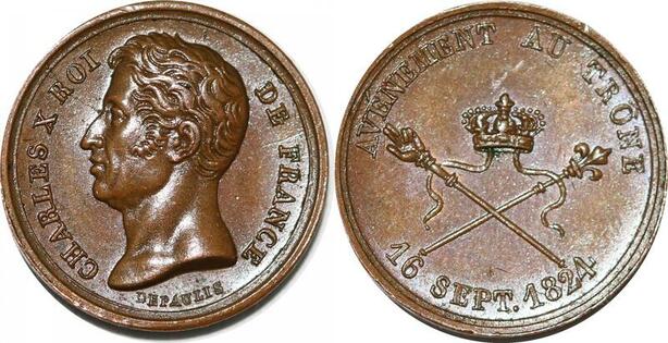 P2782 Rare France Médaille Charles X Avenement trône 1825 Desnoyers SPL
