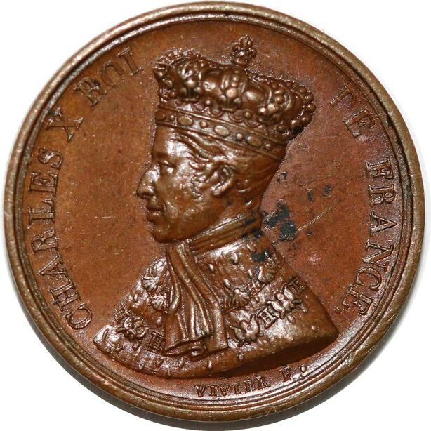 P2803 Rare France Médaille Charles X Sacré Reims 1825 Vivier Desnoyers SPL