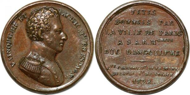 P2806 Rare France Médaille Duc Angoulème Vainqueur Pacificateur 1823 Desnoyers