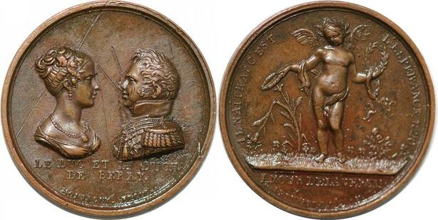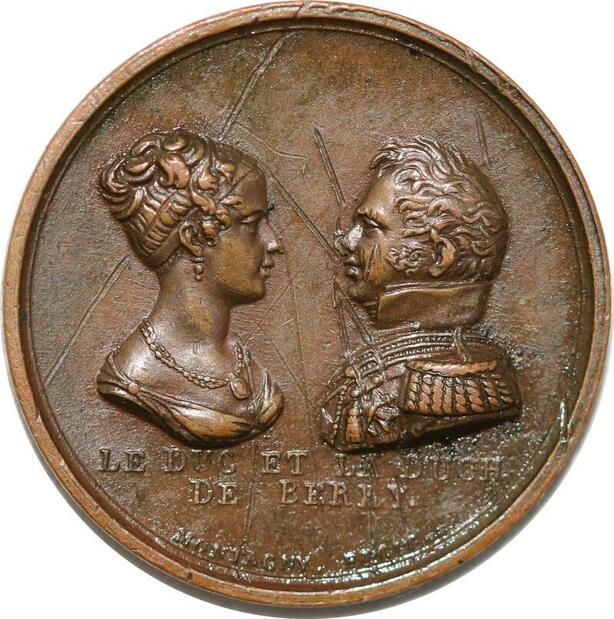P2814 Rare France Médaille Duc Duchesse Berry Amour Vertu Desnoyers SUP