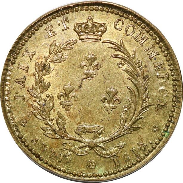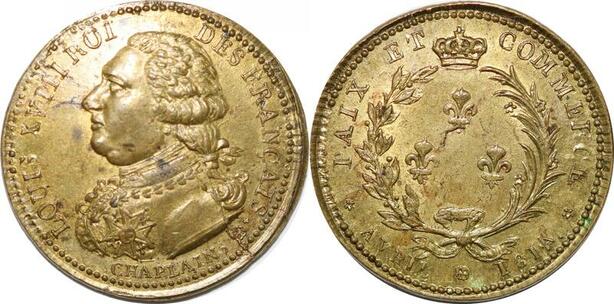 P2824 Rare France Jeton Louis XVIII Paix Commerce 1814 Chaplain Desnoyers SPL