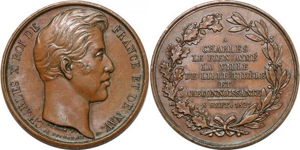 P2828 France Médaille Charles X Visite Lille 1827 Desnoyers SUP