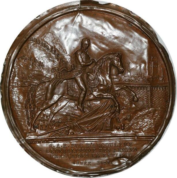 P2831 France Médaille Cliché uniface Duc Angoulème Espagne 1823 Morel Desnoyers SPL