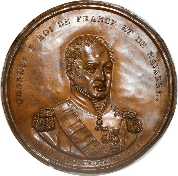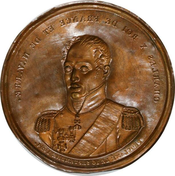 P2838 Rare France Médaille Cliché uniface Charles X Navarre 1824 Desnoyers SPL