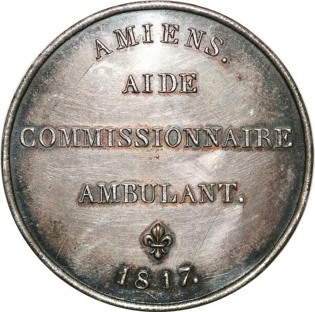 P2843 France Médaille Uniface Louis XVIII Aide Ambulant Amiens 1817 Desnoyers SUP