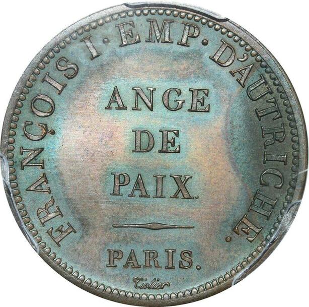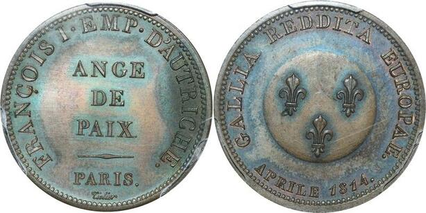 P2877 Rare France Essai 2 Francs Francois Ier d’Autriche Ange de Paix 1814 PCGS SP64