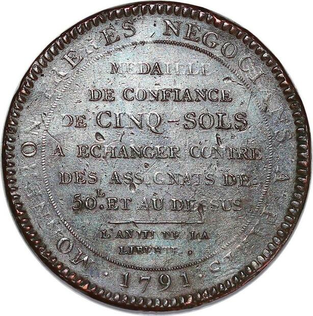 P2900 Rare France 5 Sols Monneron Confiance an 3 1791 dupré Birmingham date 1790