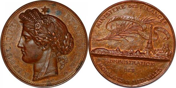 P2908 France Médaille Ministère Finances Monnaies Médailles 1789 1889 Oudiné Cérès SUP