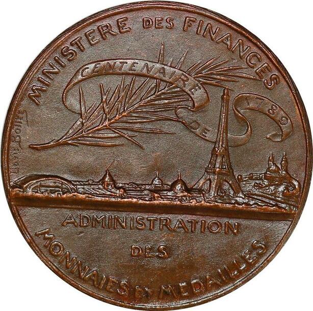 P2909 France Médaille Ministère Finances Monnaies Médailles 1789 1889 Louis Bottée
