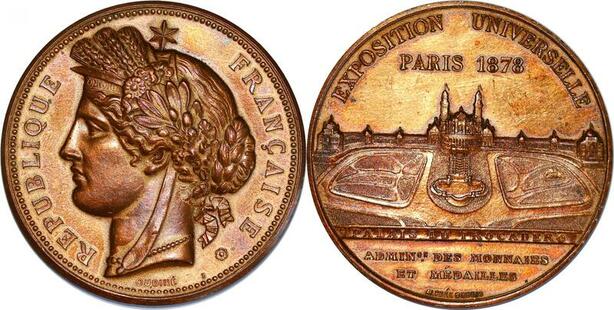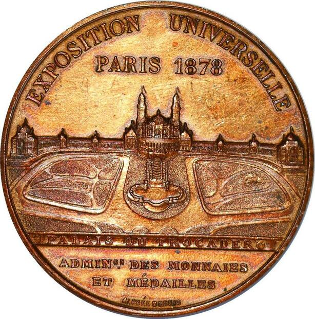 P2923 France Médaille Exposition Universelle Paris 1878 Palais du Trocadero Oudiné SUP
