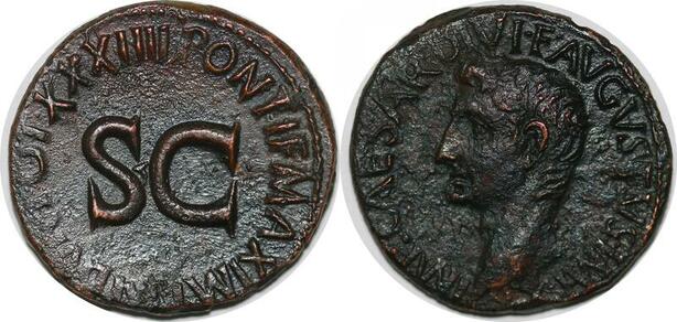 P2970 Scarce Roman Empire Augustus As Rome AD 11-12 Pot XXXIII Pont Maxim XF