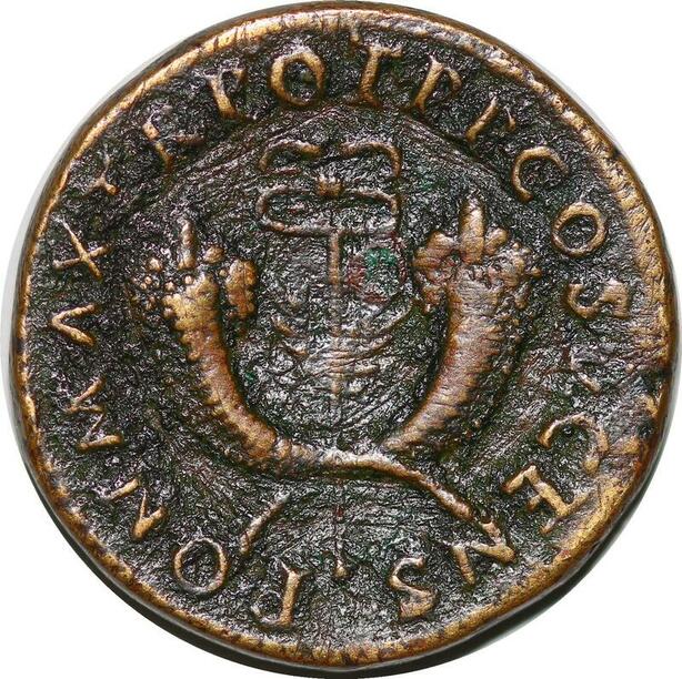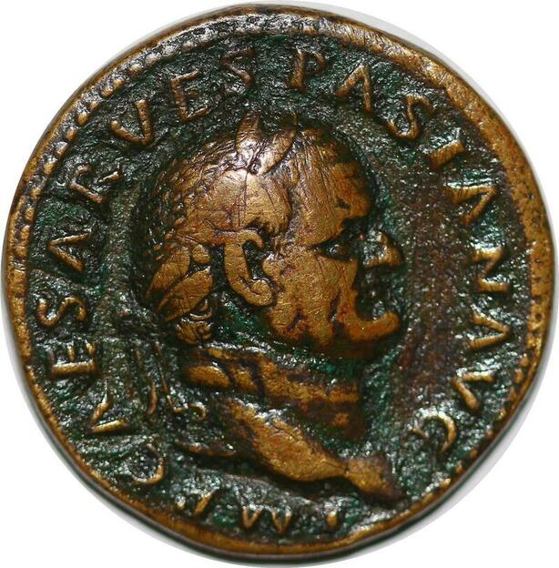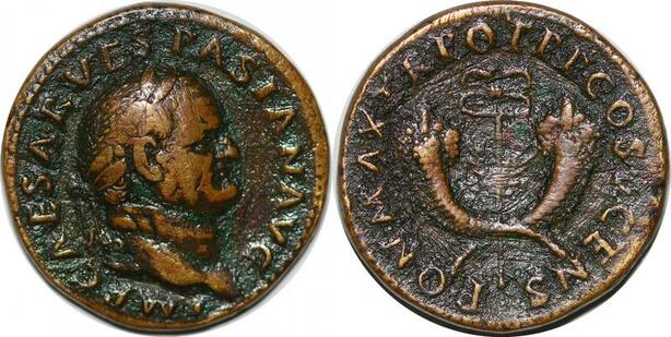 P2977 Roman Empire Vespasian 74 Dupondius Rome Two cornuacopiae caduceus