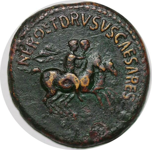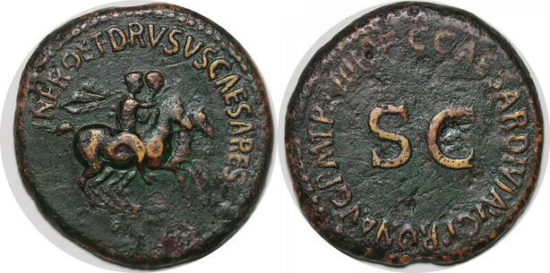 P2979 Rare Empire Romain Dupondius Tiberius 14 37 Nero Drusus prancing horses