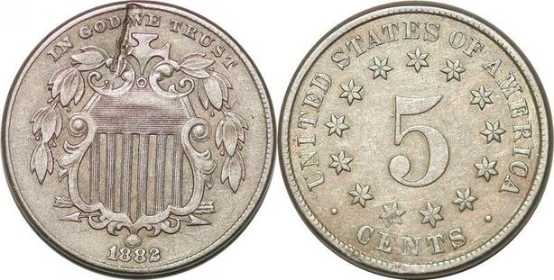 P2987 United States USA 5 Cents Shield Nickel 1882 ->Make offer