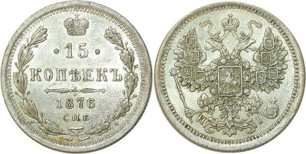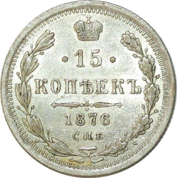 P3012 Russia 15 Kopecks Alexander II 1876 СПб МД HI Silver UNC ->M offer