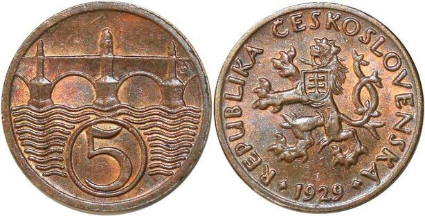 P3028 Czechoslovakia Czech 5 Haleru Lion 1929 UNC ->Make offer