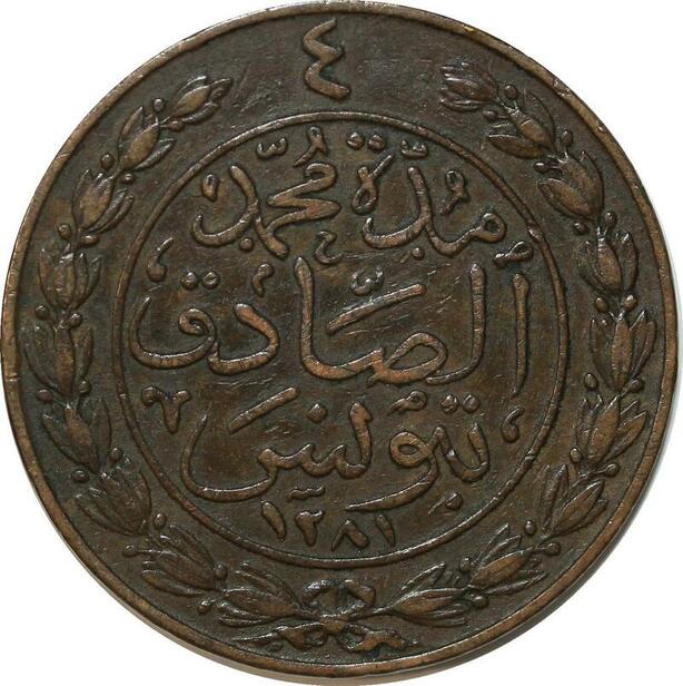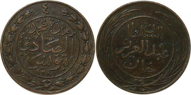 P3038 Tunisia 4 Kharub Sultan Abdul Aziz Bey Muhammad al-Sadiq 1281