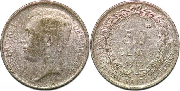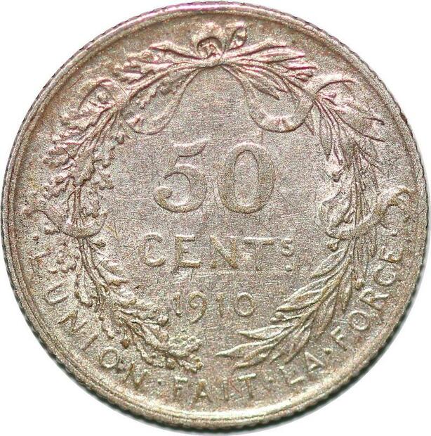 P3069 Belgium 50 Centimes Albert 1910 Silver ->Make offer