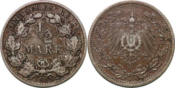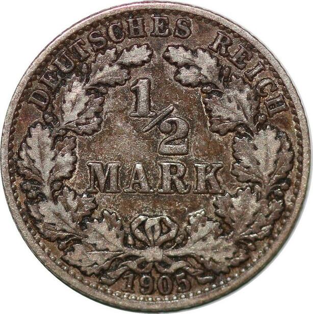 P3087 Germany Empire 1/2 Mark 1905 A Silver ->Make offer