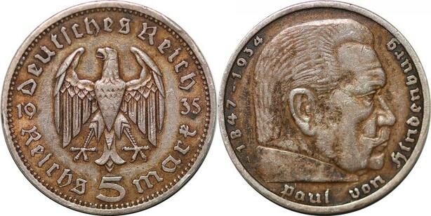 P3096 Germany Third Reich 5 Reichsmark 1935 A Silver AU -> Make offer