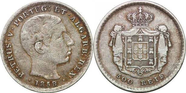 P3103 Portugal 500 Reis Predro V 1858 Silver ->Make offer