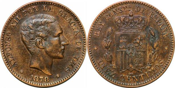 P3106 Spain 10 Centimos Alphonso XII 1878 AU ->Make offer