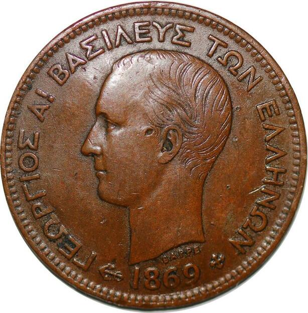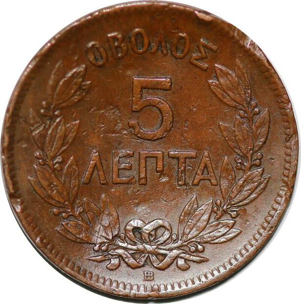 P3117 Greece 5 Lepta George I 1869 BB Strasbourg Barre ->Make offer