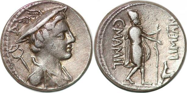 P3146 Rare Roman Empire Denarius C Mamilius Limetanus 82 BC Plain edge