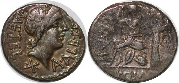 P3147 Roman Empire Denarius L Caecilius Metellus Rome 96 BC Apollo Silver